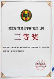 在2025年第三届“东莞法学杯”征文比赛中,学院师生成果丰硕,两篇作品双双获奖。由张芷瑄、时思阳、蒋钰三位同学合作完成的作品《东莞跨境电商面对海外诉讼下TRO临时禁令的应对措施》,经多轮严格评审,成功斩获三等奖。该作品精准锚定东莞跨境电商产业发展中的涉外法治难题,深入剖析TRO临时禁令的适用逻辑与企业风险成因,从企业合规建设、跨境法律协同、行业自律规范等维度提出可操作的应对路径,为东莞跨境电商企业应对海外法律风险、护航产业高质量发展提供了重要的理论参考与实践指引。